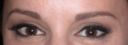 En la fotografía de la izquierda una modelo de M2 Beauté, con una ceja tratada con M2BROWS y otra sin tratar.