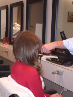 – Con la cabeza inclinada hacia delante y el cepillo en la mano, cepilla tu cabello desde la nuca hasta la frente, pasa el cepillo y repite por toda la cabeza. Si quieres puedes emplear dos cepillos a la vez y dividir la cabeza en dos zonas, derecha e izquierda. En la fotografía de la derecha, el cepillado se realiza en una peluquería, mediante un profesional, y también con la cabeza inclinada, para las capas interiores.