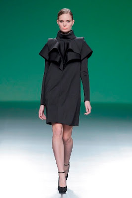 Una colección con muchas geometrías, de cinturas despegadas, en la que continúan con fuerza las capas y mini-chaquetas capa, que a mi me encantan. Y con cuero, mucho negro y otros colores muy, muy favorecedores como el tándem negro-rojo o el verde billar (precioso…). ¿A que te gusta?