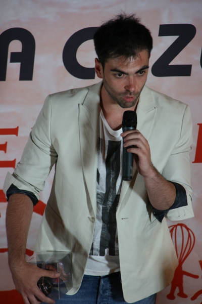 | Zeus tras recibir el premio de honor concedido a su madre, Sara Montiel. |