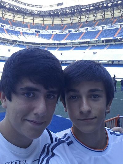 Mi hijo, Diego junto a su amigo Oscar Yagüe. En el estadio se han encontrado también con numerosos amigos y conocidos. Dada su posición privilegiada en el campo han salido en algunas televisiones como Cuatro y Canal +.