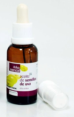 El aceite extraído de semillas de uva contiene vitamina E, vitamina A y una alta concentración de ácido linoleico (76%) y linolénico, ácidos grasos esenciales, también llamados Omega 6 y Omega 3 muy importantes en la síntesis de prostaglandinas, sustancias necesarias para reducir cualquier tipo de inflamación en la piel. Además, dicho aceite es muy rico resveratrol, antioxidante muy especial, ya que , además de frenar el envejecimiento de los tejidos, es capaz de favorecer su regeneración.