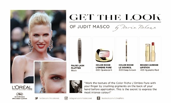 Judit Mascó cautivó al público francés por su elegancia y espectacular presencia por la alfombra roja y como no podía ser de otra manera, su maquillaje no pudo ser más idóneo para la ocasión: máscara de pestañas muy presente y unos labios rojos, pasionales y muy españoles. Además, la embajadora de L’Oréal Paris, portavoz de los productos para el cabello como la coloración Excellènce Crème y la laca Elnett, no olvidó ni un detalle de su preciosa y rubia melena, esta vez retirada y fijada en un elegante recogido.