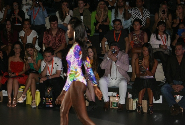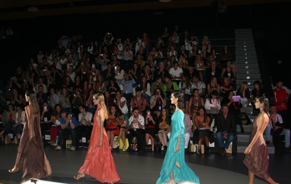 Algunos estampados y tejidos de la nueva propuesta son parte de la colección de baño Basmar Special Care by Sanddra Ibarra, para mujeres que han sufrido cáncer de mama. Por ello en el desfile no podía faltar Sandra Ibarra y el periodista Juan Ramón Lucas. La diseñadora y Sandra Ibarra se fundieron en un cálido abrazo, al finalizar el desfile.
