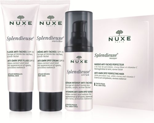 Además forma parte de una gama, la gama Splendieuse®, compuesta además por un Fluido Antimanchas SPF 20 (pieles normales),  Crema Antimanchas SPF 20 (pieles secas) y por Mascarilla Antimanchas Perfeccionadora, para aplicar como complemento semanal. Con todo el tratamiento, no habrá mancha que se resista.