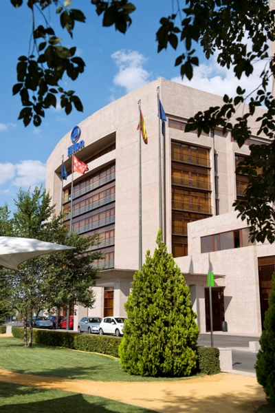 Hilton Madrid Airport, abierto en 2008, está situado en un lugar privilegiado a tan sólo 5 minutos del Aeropuerto Internacional de Madrid Barajas y a 15 del centro de la capital. Formado por dos torres de ocho plantas que convergen en un amplio vestíbulo, obra del arquitecto Miguel Oliver, y con más de 1.700m2, Hilton Madrid Airport está diseñado como gran centro de negocios y convenciones. Los espacios de trabajo están equipados con las últimas novedades tecnológicas y cuentan todos con luz natural. De alta gama son también las 284 habitaciones de Hilton Madrid Airport, diseñadas para el máximo confort del viajero de placer y de negocios. Además, todas las cabeceras de las camas están decoradas con motivos absolutamente personalizados.