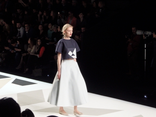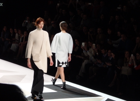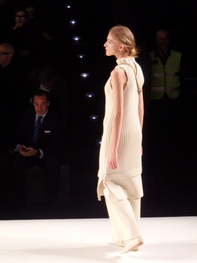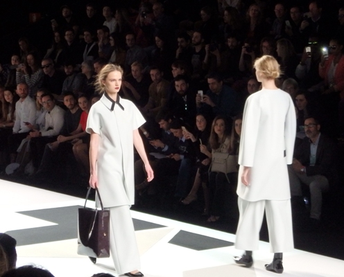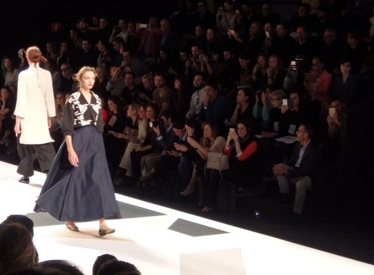 El lunes 22 de febrero de 2016 en Adoronews.com asistimos al desfile de Devota & Lomba, a las 14.00 horas en la Sala Mercedes-Benz. ¿Quieres acompañarnos? Nos sorprendió por la sobriedad, el juego de volúmenes y en especial por el protagonismo de la geometria. Faldas cónicas, chaquetas a la cintura, con vuelo… pantalones de pata de elefante. Maravillosos abrigos tres cuartos… Y una paleta de color muy engamada… blanco, negro, hielo, azul oscuro, marrón claro y marrón oscuro. Confieso que a mí en especial ese juego cromático me tiene ganada… en especial la apuesta al blanco/negro.
