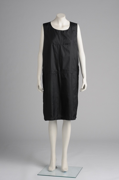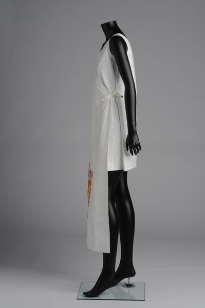 El patrón de este diseño de Rei Kawakubo para su firma Comme des Garçons nos muestra de forma clara el concepto de deconstrucción. Frente a la tradición del patronaje que toma la forma del cuerpo como referencia, en este nos encontramos ante una serie de figuras geométricas irregulares que se recomponen como si se tratara de un puzle tangram. Desaparecen las pinzas de ajuste y los cortes curvos que se acoplan al cuerpo, y en cambio surgen diferentes posibilidades a la hora de vestirlo, quedando en manos del usuario la interpretación última del vestido.
