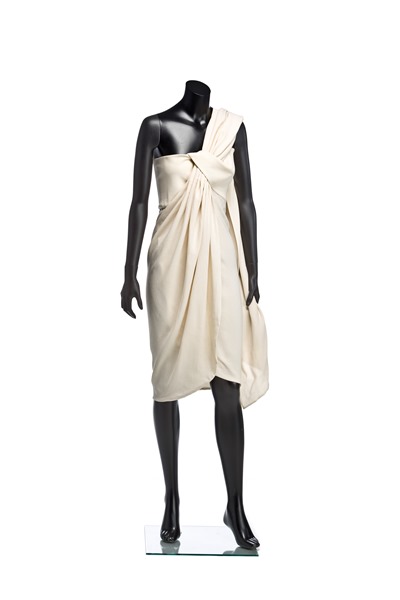 La aparición del vestido Delphos en 1907 constituye uno de los hitos fundacionales de la moda contemporánea y del vestido moderno, en el que las formas se ajustan progresivamente a las propias del cuerpo femenino. La influencia de Fortuny es grande, pero en este caso nos interesa el desarrollo de esa nueva silueta que pasa por la revisión de la indumentaria de la antigüedad clásica y encuentra su última formulación en los vestidos stretch de los años 80 y 90 del siglo XX.