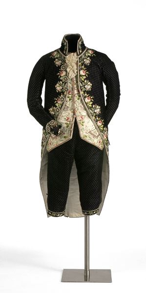 El traje masculino de tres piezas se impone en el siglo XVIII. Compuesto de casaca, chupa y calzón, evolucionará en el siglo XIX hacia el frac, que se combina ya con pantalones largos. A partir de este momento la tipología básica del traje de hombre apenas sufrirá cambios hasta el presente. En el contexto de la posmodernidad aparece reinterpretado en la moda femenina, del mismo modo que en diversos momentos se recuperan las decoraciones floridas habituales en la moda rococó, tanto en modelos femeninos como masculinos.