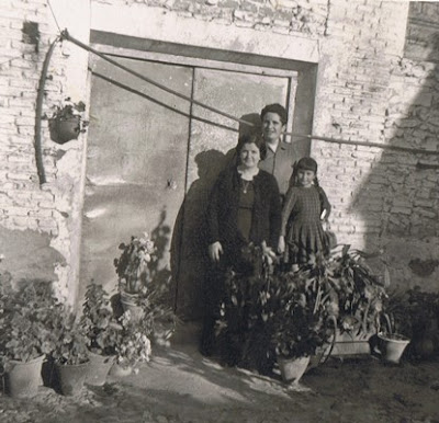 Ella, Estefana, está en la foto con moño bien tirante, y a su lado su hijo Timoteo. La abuela Adoración murió días antes de comenzar la Guerra Civil, el mismo día que su yegua (algo muy curioso, en casa de mis abuelos había siempre caballos, mi abuelo tuvo un precioso caballo siempre, hasta que falleció, con él iba a todas partes, incluso hasta Toledo, a 30 km de mi pueblo…).