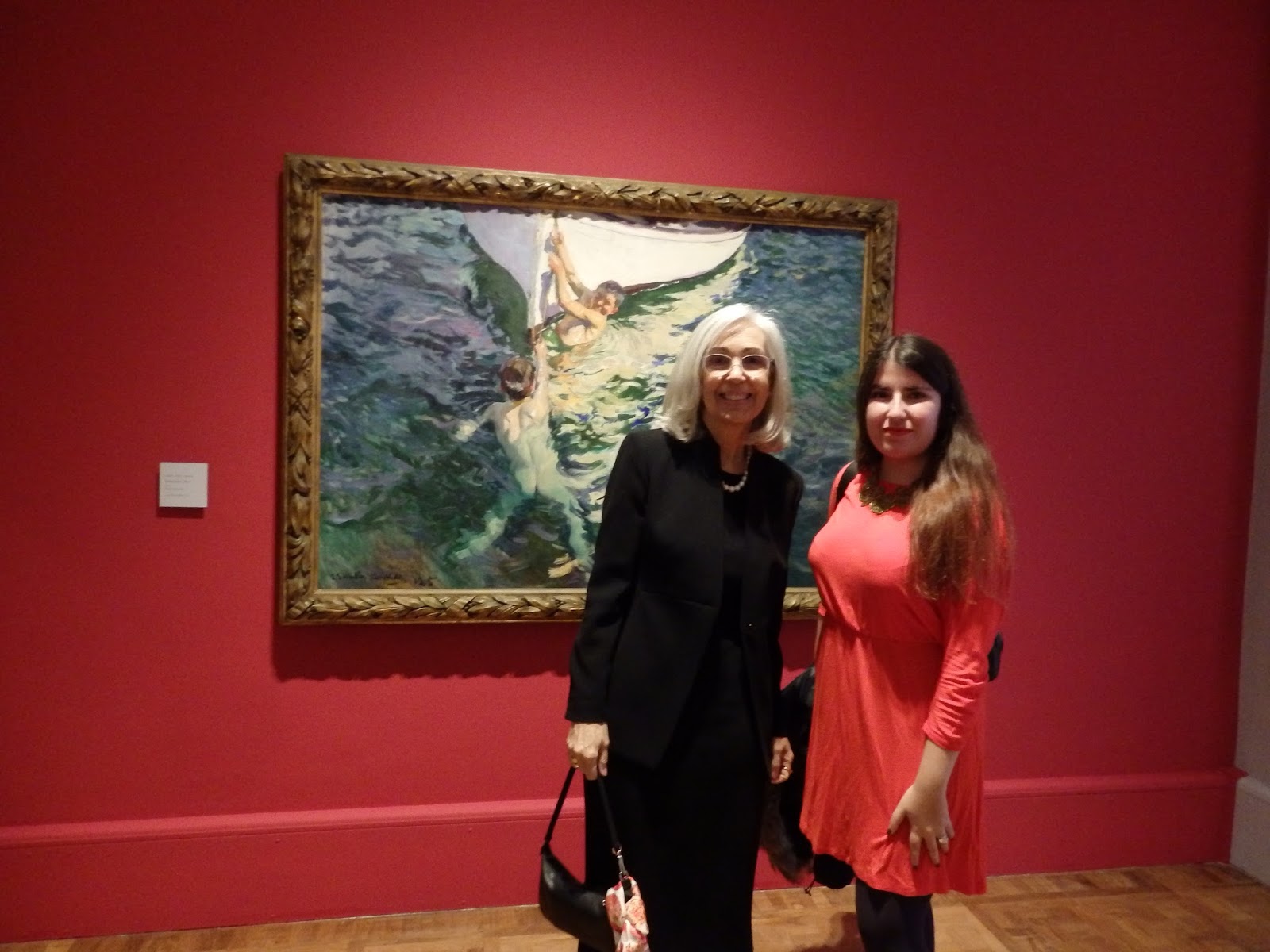 | Ana Zamora, redactora de Adoronews.com, con la bisnieta del pintor, Blanca Pons-Sorolla, una de las comisarias de la exposición. |