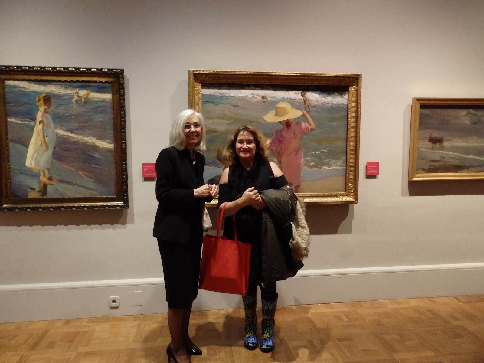Ana Zamora, redactora de Adoronews.com, con la bisnieta del pintor, Blanca Pons-Sorolla, una de las comisarias de la exposición.