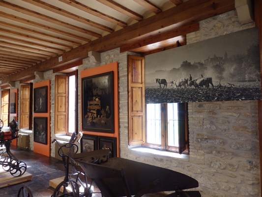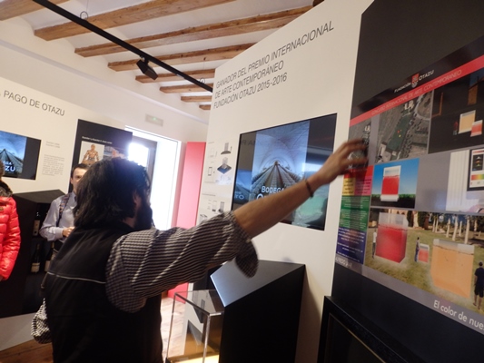 A las 8.00 horas de la mañana salimos en autobús desde Madrid, y llegamos a las 13.30 horas a la bodega, con parte del equipo del programa chino. Tras las presentaciones de rigor, y un brunch, el productor/presentador del programa nos contó que había decidido elegir España como uno de los destinos de su programa cuando vio un dibujo de Don Quijote y Sancho Panza, realizado por Pablo Picasso. Por su parte Guillermo Pense habló del honor de recibir de nuevo en su bodega a un equipo chino, tras el éxito obtenido y la difusión mediática por el hecho de que en ese mismo lugar se hubiese grabado la final del programa Master Chef chino. Y se ofreció a enseñarnos parte de su colección de arte, que es impresionante. Sus padres comenzaron la colección y él ha seguido su ejemplo. Guillermo nos contaba que cuidan con mimo hasta el último detalle, como las etiquetas de sus vinos, que hacen siempre artistas reputados… Por algo el lema de la bodega es vino, arte, historia y naturaleza.