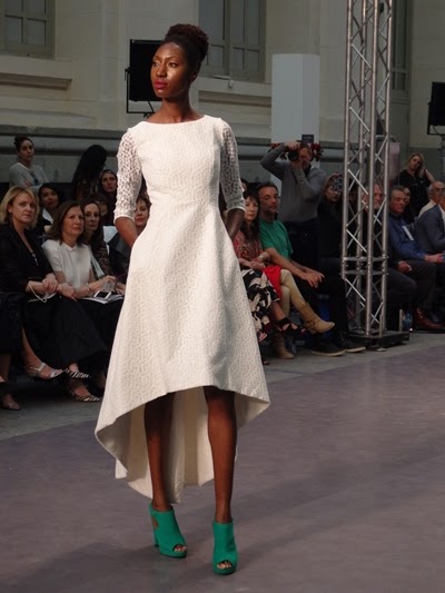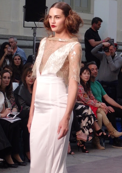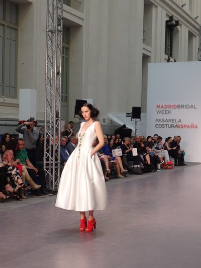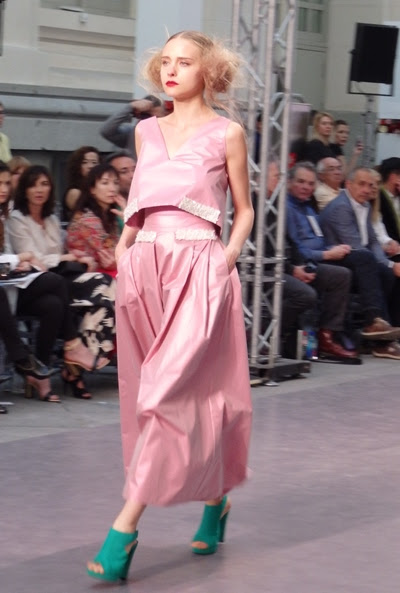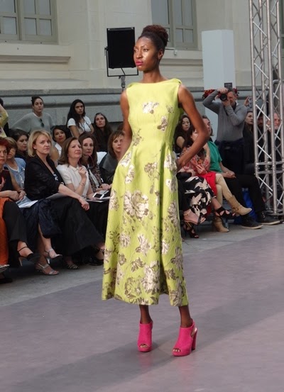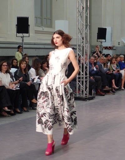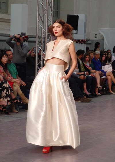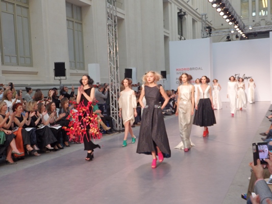 Mágica nos aparecido esta muestra, donde ha primado el color, con tejidos espectaculares, como el satén, elegantes largos y midis, con el negro y el blanco, o los crudos como principales protagonistas. Sin descartar otras opciones como los anaranjados, azules, morados, verdes… Nos han encantado los diseños, los hombros al descubierto, los escotes pronunciados en la espalda, los largos asimétricos… Y los zapatos, de vivos colores en contraste, en fucsia y verde, un complemento de lo más favorecedor.