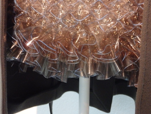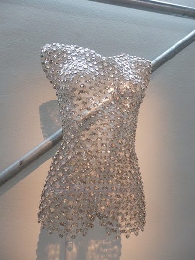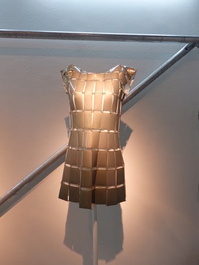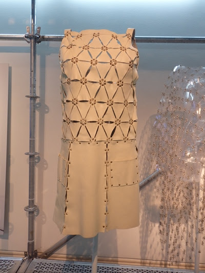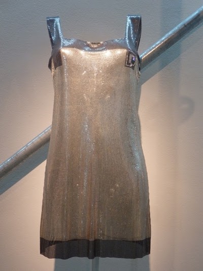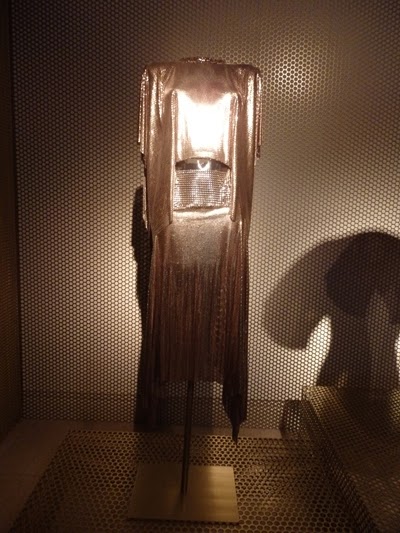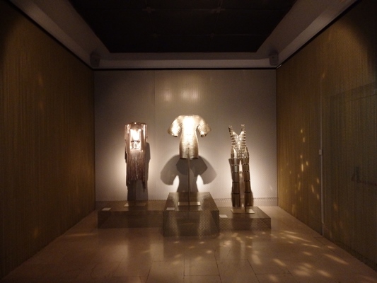 También hay una sala llamada Golden Room proyectada a modo de gran “caja de oro” e inspirada en la colaboración de Paco Rabanne en la saga de James Bond. Este espacio alberga las tres piezas que posiblemente sean las más impactantes de la exposición, todas en metal dorado: dos de Paco Rabanne y una de Julien Dossena.