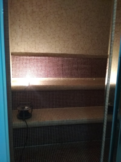Baño de vapor, se aconsejan sesiones de 6-12 minutos, y a continuación ducharse con agua fría. No es bueno hacer más de 2 sesiones y al finalizar conviene hacer un descanso de 15-20 minutos, en las tumbonas. Antes de vestirse: ducha caliente.