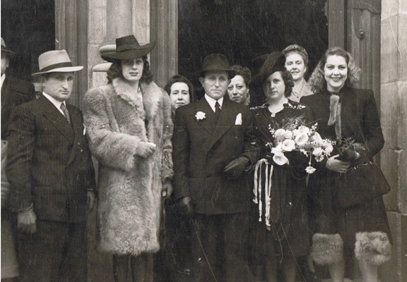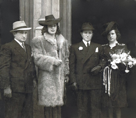 Cerramos esta nueva boda con una última fotografía de los novios, mis tíos, junto a sus padrinos. El padrino es Benjamín Rodríguez Valdés, mi padre, al que podemos ver, al igual que su hermano mayor, también con guantes de piel y sombrero claro. ¡Qué gupísimos estaban todos ese día 13 de diciembre, día de santa Lucía!