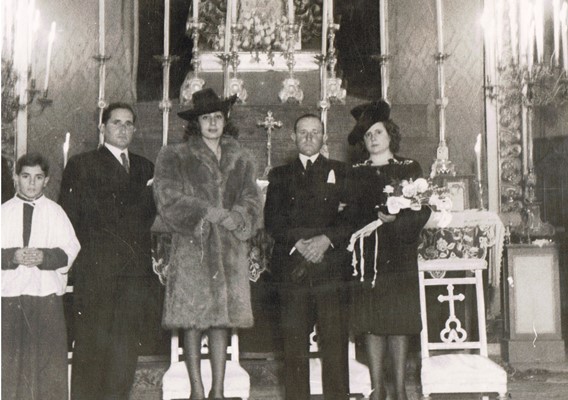 En la fotografía superior, los novios posan ante el altar en el que posiblemente se casaron, se aprecia la parte inferior de la imagen de una Virgen, que podría ser la Soledad, a la que la familia tenía una gran devoción. Están junto a sus padrinos de boda, un hermano del novio, Benjamín Rodríguez Valdés, y posiblemente una hermana de la novia. Y el monaguillo que asistió a la ceremonia.