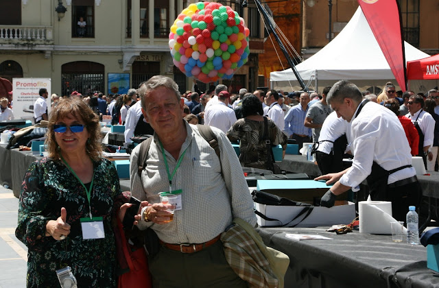 A las 12 de la mañana ya estábamos en el centro de la ciudad, en la preciosa plaza de la Catedral (nuestro tren salió de la Estación de Chamartín, en Madrid a las 9,30 horas) para presenciar los trabajos de preparación del Guinness. Las piezas ya estaban cortadas a cuchillo -dado que empezaron a cortar sobre las 11 de la mañana- y numerosos voluntarios colocaban las bandejas de cecina cortada, en una plataforma situada a pocos metros de la catedral leonesa. Los cortadores, en ese momento, limpiaban y guardaban ya sus cuchillos. Un hervidero de gente, entre periodistas, leoneses que querían presenciar en vivo y en directo este Récord, representantes del ayuntamiento leonés, de la IGP, cámaras, fotógrafos… En un día espectacular, con sol, calor, y unos 20 grados de temperatura…