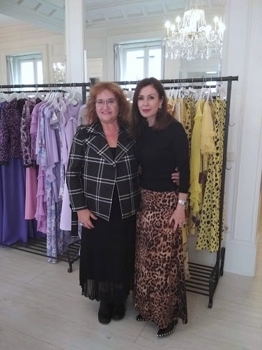 | Adoración Rodríguez, directora de Adoronews.com, con Teria Yabar, que luce una preciosa falda en animal print. |