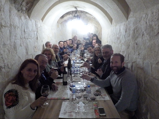 En la bodega, situada a 10 metros de prufundidad, y decorada con instrumentos y aperos de labranza, hemos podido hacer un pequeño taller de olores, otro táctil… para después realizar la cata de vinos Tudanca dirigida por Laura Sardina, periodista y responsable técnica de los Vinos Tudanca. Laura ha sido la persona que nos ha contado la historia de su familia y nos ha dado una primicia, nos ha presentado un vino con el que la familia Tudanca va a hacer un homenaje a la fundadora del clan, Vicenta de las Heras. Con nosotros también, Jesús Yagüe, director adjunto del Grupo Tudanca. Laura, que también es sumiller, nos contaba que «Grupo Tudanca es más que el Área Tudanca, más que pastelerías Tudanca… es el carácter de una familia.