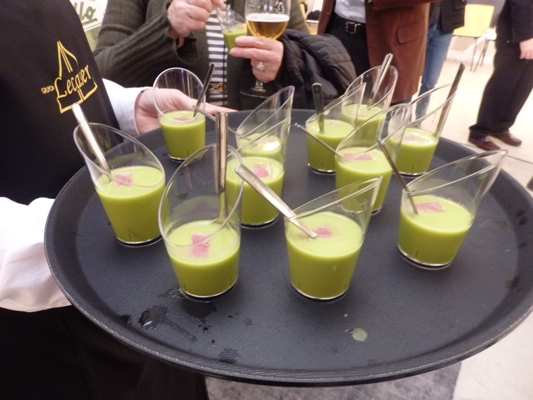 | Delicioso este primer plato, que hemos tenido la suerte de probar, durante la presentación. «Tofee de mantequilla salada de guisante con cabeza de cerdo ibérico.» |