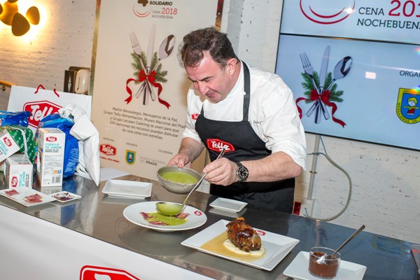 Este es el cuarto año consecutivo que Grupo Tello Alimentación lleva a cabo su iniciativa de los Menús Solidarios y el segundo que cuenta con el chef Martín Berasategui para elaborar la receta de los 250 menús que se ofrecerán en la Cena de Nochebuena de Mensajeros de la Paz.
