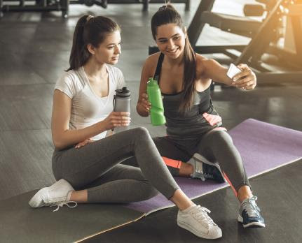 Consejo Sprinter: sientáte sobre una de las máquinas o en el suelo con las piernas cruzadas, e inmortaliza tu momento `break´ en el gym para tus followers.