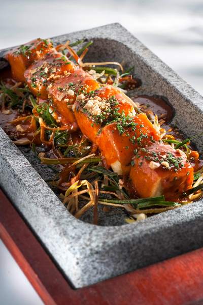 Otras especialidades son los Dim sum como el Shaomai de arroz glutinoso, el Pato servido aquí con arroz palomita o los tiernos Daditos de solomillo con pimiento rojo. También conquistan sus postres entre los que destaca la Tarta de chocolate picante con crema de cacahuete.