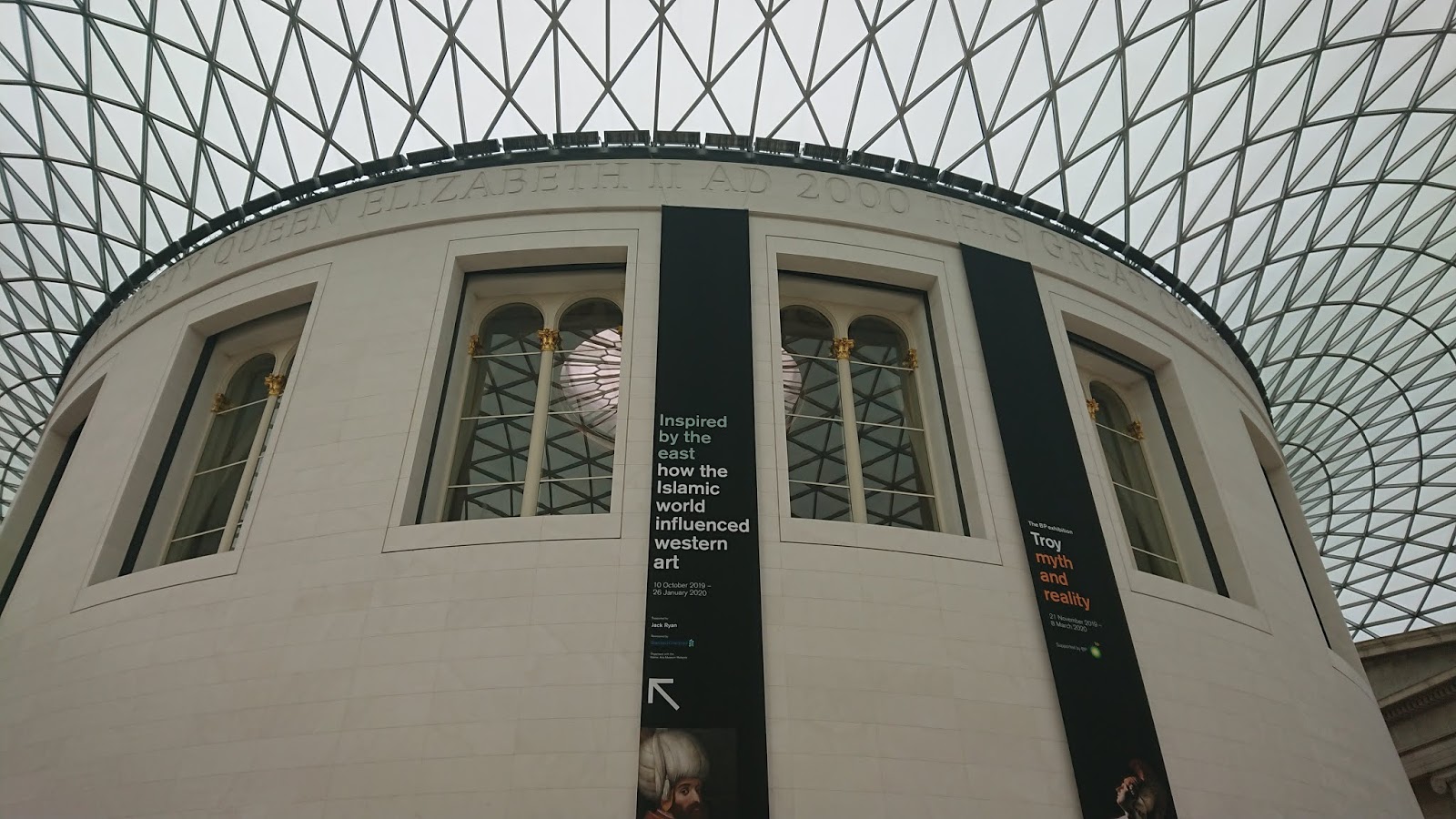 A la entrada sorprende el Gran Atrio de Isabel II, inaugurado en el año 2000, en el centro del museo y diseñado por el estudio del arquitecto Norman Foster, se ha convertido en la mayor plaza cubierta de Europa (90 x 70 m). El techo azul es de cristal y acero, en el centro se encuentra la sala de lectura.