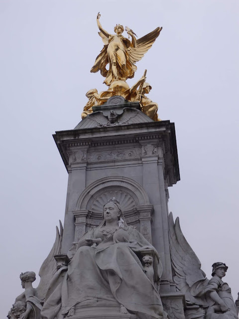 Frente al palacio está el monumento a la reinta Victoria, que fue la que estableció este palacio como residencia real. Hasta el año 1997 la única bandera que ondeaba era el estandarte real, la bandera de la soberana británica que ondea cuando la reina está en palacio. En tiempo de luto la bandera no ondea a media asta… algo que recriminaron los ingleses cuando falleció lady Di, en 1997, y que la soberana tuvo que rectificar por el enorme descontento popular. La reina no estaba en palacio, por eso no ondeaba ninguna bandera, por lo que la soberana indicó que se rompiera el protocolo. Acto seguido se colgó la Union Jack a media asta hasta el día del funeral. Desde entonces, la bandera oficial del soberano británico ondea cuando está en el palacio, y la bandera del Reino Unido es la que permanece izada cuando no se halla en él. En los casos de fallecimientos de familiares o desgracias nacionales ondea a media asta.