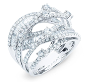 Rabat. Anillo de oro blanco con filas entrelazadas de diamantes talla brillante y talla baguette.
