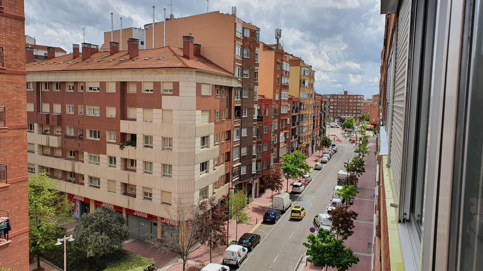 Ania Iglesias, calle Embajadores, Valladolid. Artista & Comunicación. «Aquí además de un Arco Iris muy bonito, te mando una imagen del momento de los aplausos en mi calle vallisoletana.»