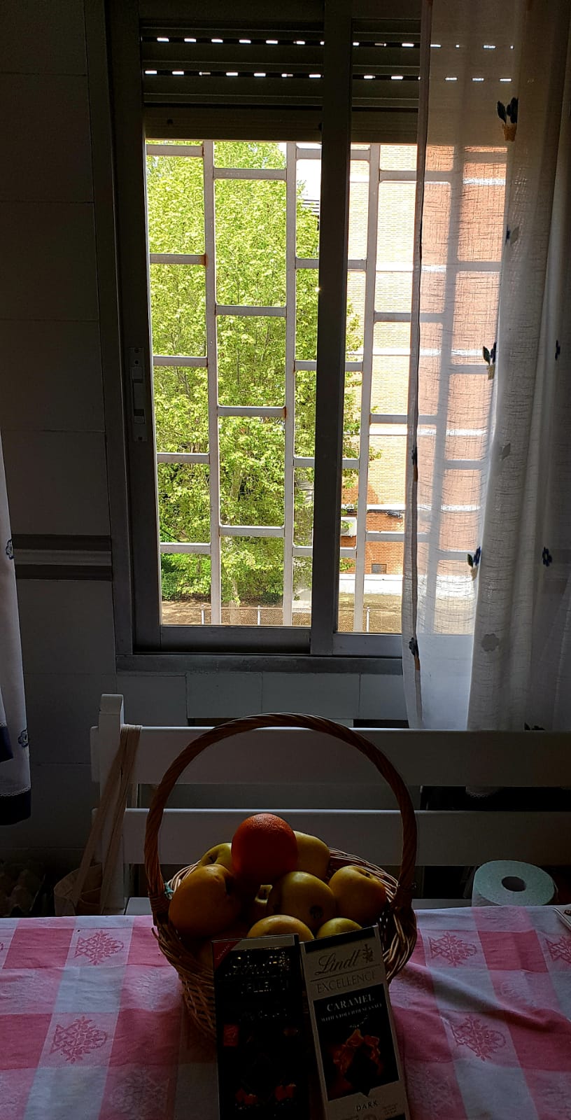 | A.A y C.M Molino de la Hoz, Madrid. Médicos. «Estas son mis vistas, desde nuestra cocina, pero no son las reales. Mis vistas reales son las del hospital. Darte estas me da mucha vergüenza, porque no es la realidad» nos confiesa ella. Yo le he pedido, si ella quiere, que me pase algunas vistas de las otras, sus verdaderas vistas en estos días.