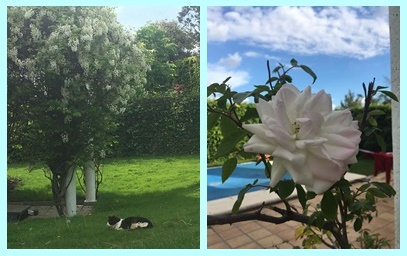 | Isabel Gallo, El Encinar de los Reyes (Madrid). Periodista. «Las plantas dan mucha alegría» y que lo digas… preciosa tu glicinia blanca y también la morada. Una suerte tener espacio para salir y ver esas vistas…
