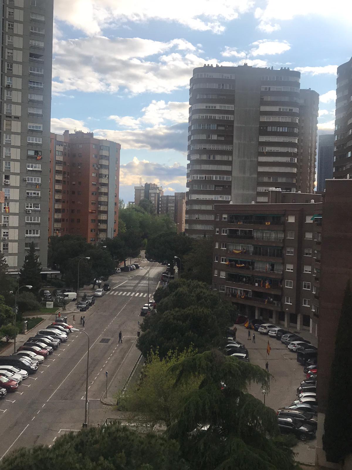 M.G.T. Pinar de Chamartín-Madrid. Directora de Comunicación. «Esta fotografía es de ayer. Es justo lo que vemos en el momento del aplauso, desde mi domicilio en Madrid. Como ves ya se ve un poco más de gente.»