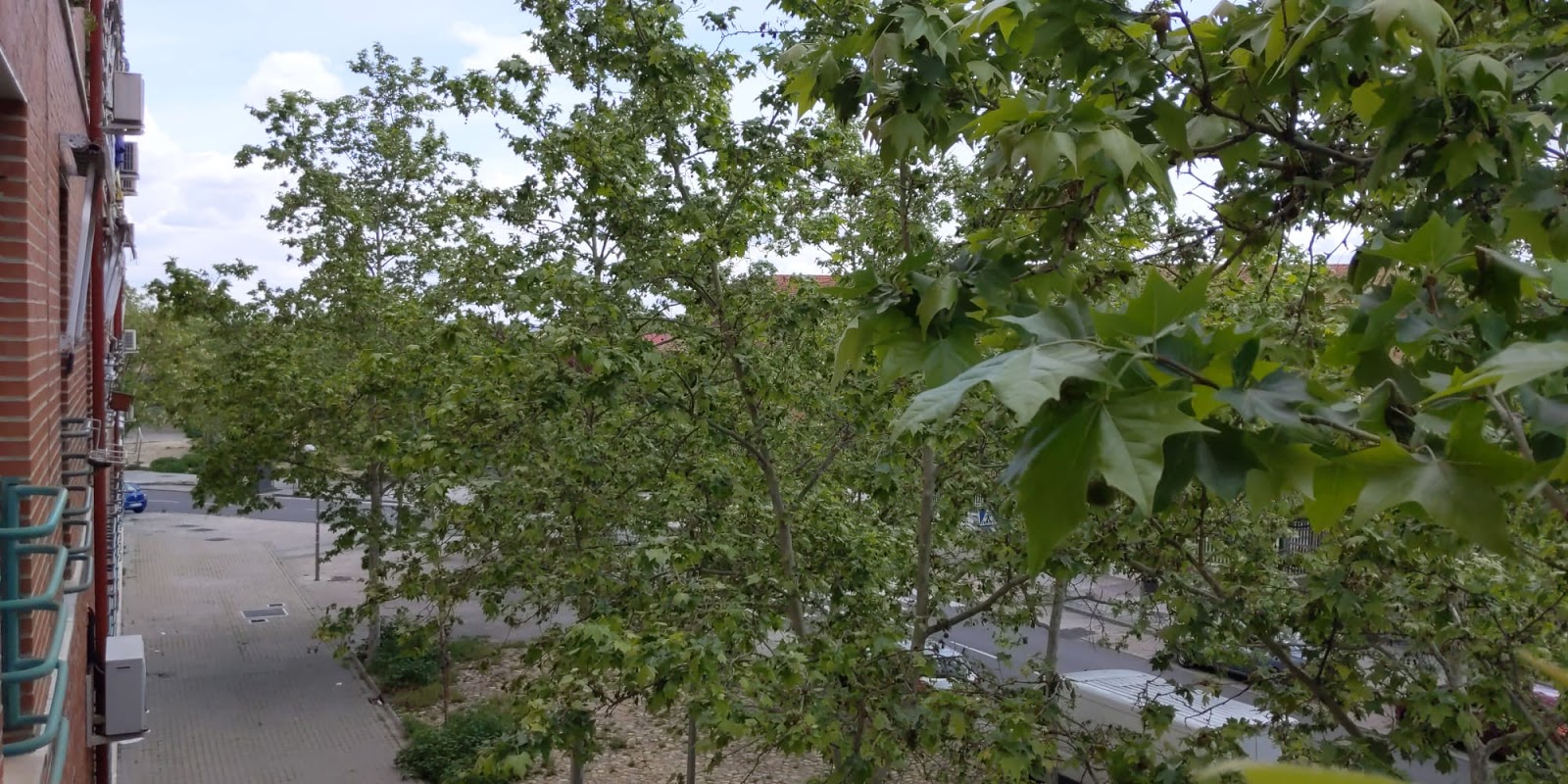 | Pilar Ortega, Vallecas, Madrid. Periodista. «Esto es lo que veo, son mis vistas, la iglesia que casi no se ve por los árboles es la Iglesia del Buen Pastor». Pilar debido a la Pandemia tuvo que suspender un viaje a Nueva York con sus hijos. Con ella y más compañeros estuve en una comida de prensa de los Aceites Valderrama, en el Mesón de Doña Filo, justo antes de la Declaración del Estado de Alarma. Cuando, por la mañana, fuimos al punto de encuentro para el bus, casi no había gente por las calles: Preciados, Callao, Gran Vía… A la vuelta por la tarde, estaba ya todo lleno de gente. Caminamos juntas desde la Plaza de España hasta la Puerta del Sol, que aunque tenían menos gente que habitualmente (la mitad, aproximadamente) seguían estando muy llenas de gente, pese a que todos ya teníamos información de que lo prudente era estar en casa. |