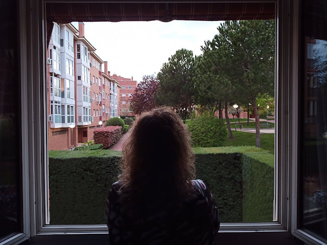 Ahora me sucede todo lo contrario, en cuanto que oigo la música (a eso de las ocho menos cinco o menos cuatro minutos…), ya estoy buscando la mejor ventana para acompañar a mis vecinos en este canto a la vida, en ese aplauso a los sanitarios, transportistas, dependientes, farmaceúticos, limpiadores… a todos los que con su trabajo nos están cuidando. Para mí y mis vecinos esos 5 o 10 minutos se han convertido en un chute de ánimo. Elijo una ventana u otra dependiendo de otros factores: que mi hijo esté estudiando (entonces salgo a la más alejada), que me de el sol en los ojos, procuro irme a otra…