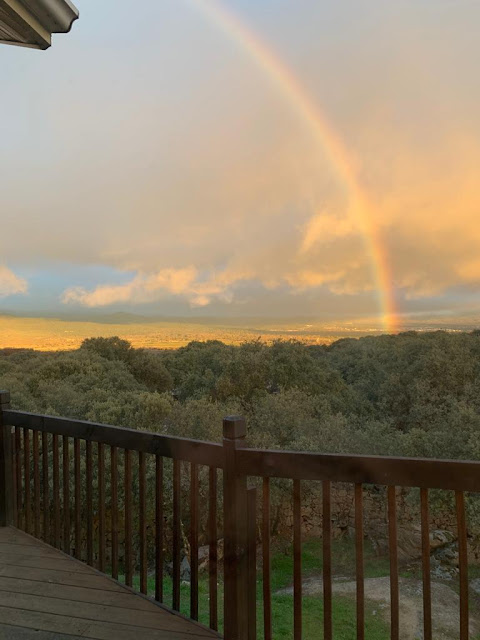 He decidido guardar un recuerdo, quien dice uno dice unos cuantos (me encantan las fotografías)… de estos días tan irreales, aquí confinados entre cuatro paredes. Me siento extraña, que no aburrida, pero sí con muchas -enormes- ausencias. Las lágrimas se me siguen saltando, hoy van más de 17.000 muertos y eso no hay música que pueda paliarlo, sólo me permite hacer un paréntesis de 5 minutos. Echo mucho de menos a mi hija (con la que hablamos por videollamada de vez en cuando y mucho por whatsapp, dado que ella pasa el confinamiento en Dublín, ), a mis amigos, a los que no veo desde hace tanto tiempo, a mi jardín de la sierra (que hace que esté que me suba por las paredes, lo necesito como respirar y tengo que conformarme con ver uno desde la ventana), a mi dehesa serrana… con esos paisajes que me vuelven loca. Lo peor es pensar, como pienso, que esto va para largo… No veo el final, aunque seguro que llegar llegará (pero me deprime mucho, lógico).