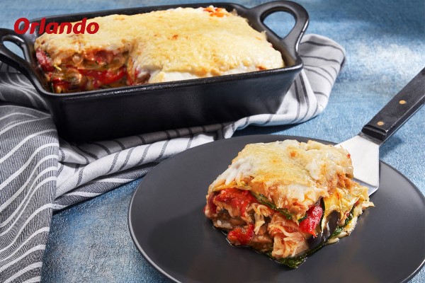 incorporar una capa de verduras, tomate Orlando casero y queso rallado, en este orden. Repetit la
