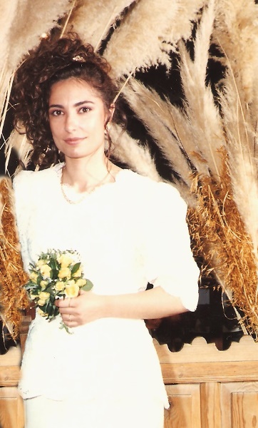 Se hizo el traje de novia a medida, en una tienda especializada de la calle Goya, cuyo nombre no recuerda ahora. «No me iban los vestidos de novia clásicos. Para mi boda elegí algo más sencillo, un vestido con cuerpo de encaje y una falda recta larga con una quilla». Un vestido más estilo sirena. La espalda del vestido abotonada por detrás, según recuerda la novia, casi 30 años después.