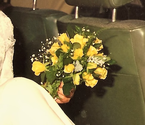 No recuerda haber llevado arras. «La mañana de la boda fui a comprarme los pendientes.» El ramo también sorprende por su color. Es un ramo pequeño y discreto, de rosas amarillas (sin miedo a la mala prensa de este color) y con florecillas blancas.