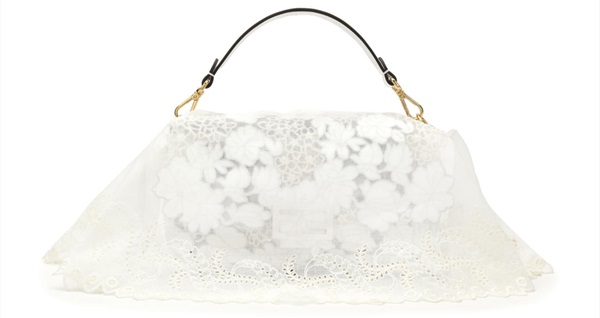 Para su última colección como directora creativa de la casa, Silvia Venturini quiso hacer un homenaje a Karl Lagerfeld con suaves velos bordados sobre Baguettes y Mini Baguettes, rememorando su pasión por los finos tejidos de ropa de cama.