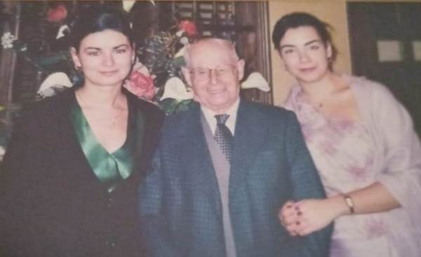 | Hilario con sus nietas, hijas de Isabel: Angélica y María Isabel. |