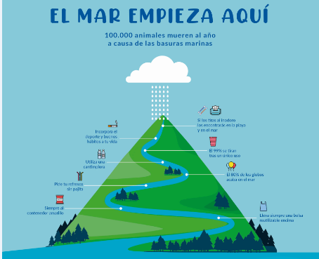 A través de estos carteles informativos se explica el gravísimo problema que supone para los mares y océanos el consumo irresponsable de plásticos de un solo uso. Con esta acción se promueve un consumo responsable y el respeto del medio ambiente porque “estés donde estés tus acciones pueden dañar a los animales marinos”. De hecho, el 80% de las basuras marinas comienzan en el interior. A través de los ríos llegan al mar bastoncillos y toallitas, colillas, envases o globos que acaban con cien mil animales marinos al año.