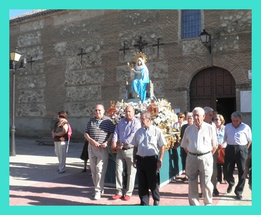 Y lo hace con un extenso programa de fiestas, que te incluimos también a continuación. La Virgen Chica se festeja año tras año el primer domingo de septiembre. Para quién no lo conozca, este pueblo toledano, mi pueblo, pertenece a la comarca de la Sagra (está situado a tan sólo 30 km de Toledo) y pese a que en los últimos años ha recibido a numerosos nuevos habitantes -con el boom de la construcción en la localidad- por fortuna sigue manteniendo sus raíces y sus tradiciones a salvo. Muchos de estos nuevos vecinos se han integrado felizmente a ellas… claro que sí. Hay que agradecer, y mucho, que un puñado de habitantes de toda la vida cuiden con máximo cariño, que el legado que heredamos de nuestros padres, abuelos, bisabuelos… se mantenga. Como ha hecho Marivi Simón, actual presidenta de la Cofradía de la Virgen Chica, cargo que anteriormente ostentó su padre, Petronilo Simón Casarrubios, y anteriormente su abuelo, Antolín Simón Casarrubios. Claro ejemplo.