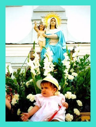 Esta soy yo, ofrecida a la Virgen Chica. ¡Cómo me gusta esta foto! |